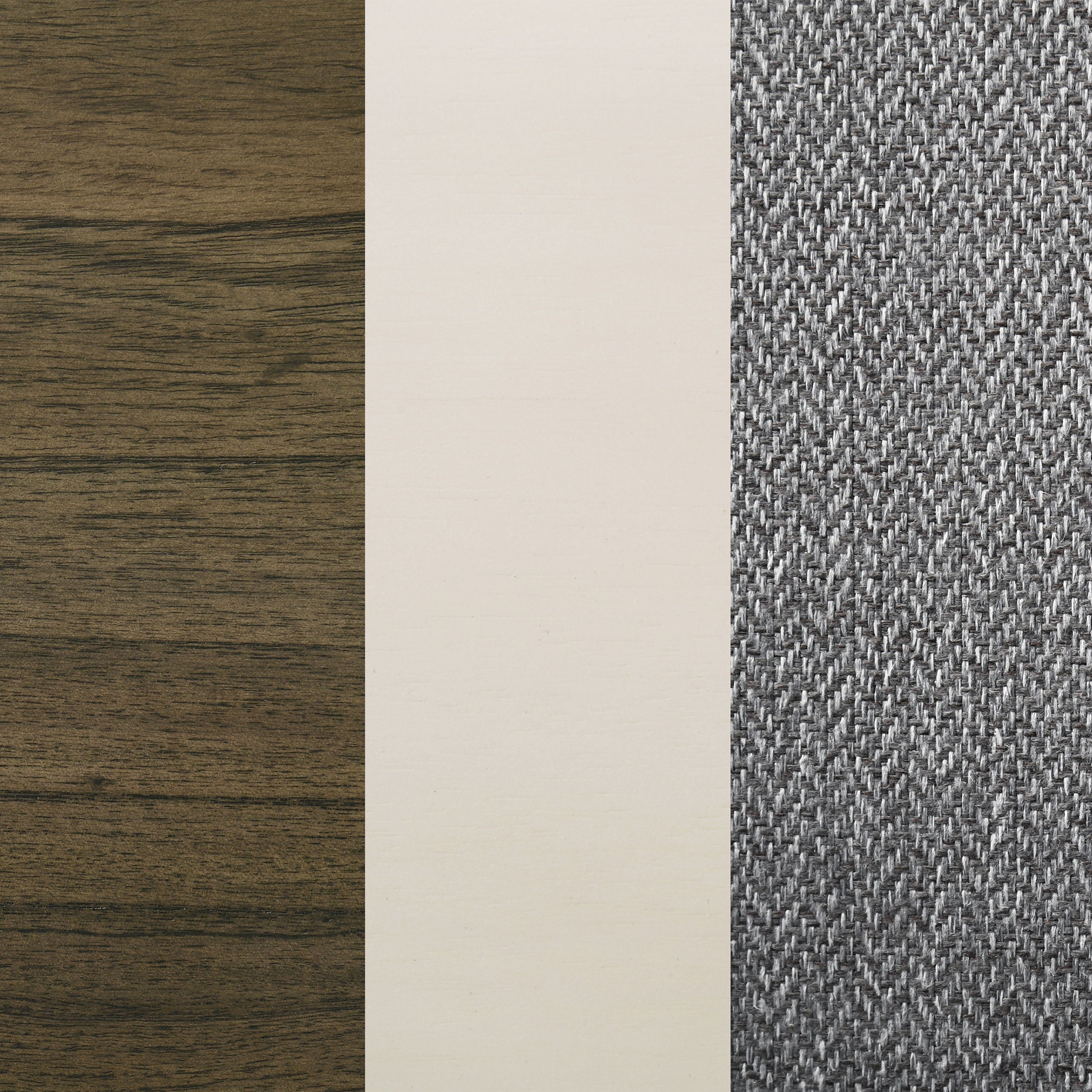 Refresh a family dining space with the cool hues and eye-catching design of this modern dining set. It includes a rectangular table and side chairs, creating an inviting centerpiece in your dining room or eat-in kitchen. The table boasts a two-tone finish with a rich wood grain tabletop complete with rounded corners, and a white finish base with chic angularity. Chairs are plush and comfortable, complete with gray fabric upholstery over plush cushions that create streamlined aesthetics in your space. The tri-tone combination is fresh and inviting, perfect for a welcoming space to catch up with friends and family.