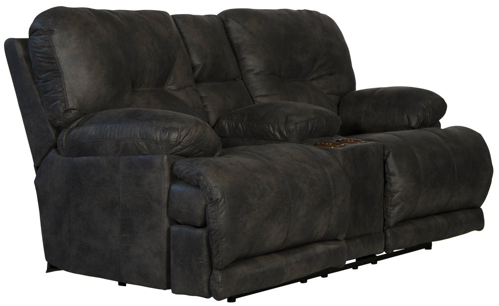 Catnapper Voyager Power Lay Flat Reclining Console Loveseat in Slate