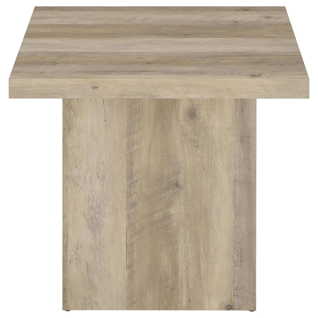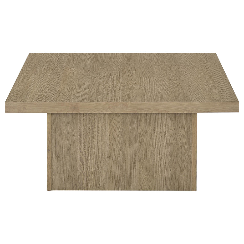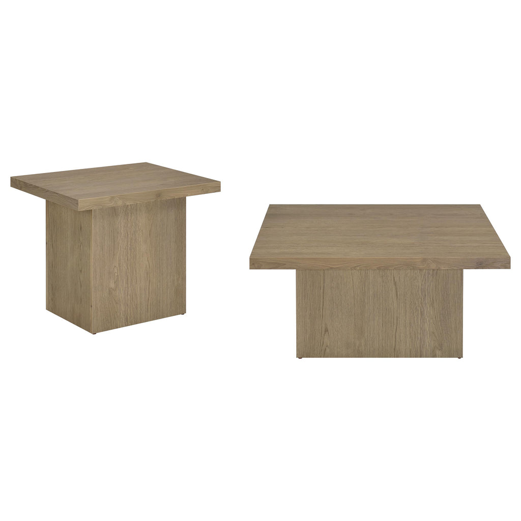 This coffee table set combines the natural beauty of engineered wood with a rustic mango finish. The sleek, square tables feature clean lines and oversized block bases, providing a sturdy and stylish design that enhances casual living spaces. The laminate veneer offers a wood grain appearance, reflecting an earthy, organic vibe that works well in relaxed, contemporary rooms. These occasional tables are ideal for creating a cohesive and functional centerpiece in your living area. Key Features: • Coffee table set made from engineered wood with laminate veneer for durability • Features a natural mango wood look with grain markings for a rustic touch • Spacious square tops offer ample surface area for decor or everyday items • Oversized block bases provide a stable, grounded design • Eco-friendly laminate veneer offers a scratch-resistant surface for easy care • Versatile design works well in both standalone and paired configurations