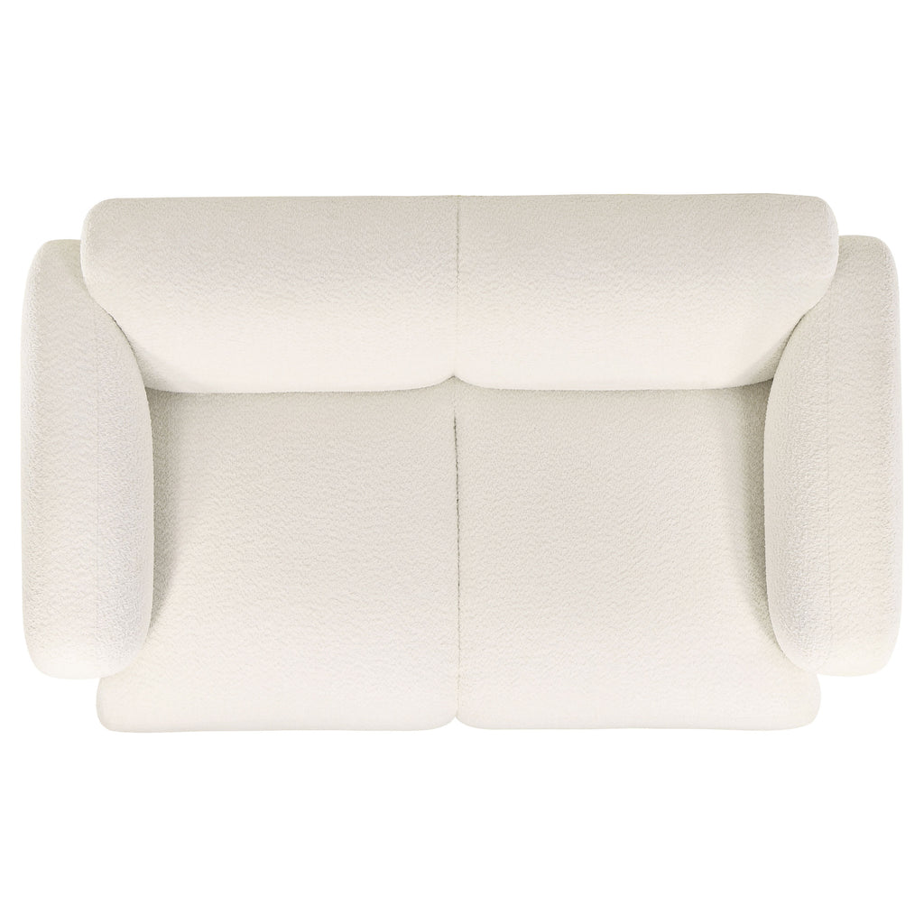 This sculptural sofa set blends soft curves with modern simplicity for a cozy, elevated lounge experience. Each piece is wrapped in richly textured fabric and designed with a low-profile frame, rounded edges, and wide track arms that invite you to unwind. High-quality foam and pocket coil seating ensure supportive comfort that lasts. With its seamless silhouette and tactile finish, this sofa set offers minimalist warmth and relaxed sophistication for any contemporary living space. Key Features: • Sofa set with rounded silhouettes and low-profile frames for sculptural modern appeal • Upholstered in textured white fabric with soft feel and warm visual dimension • Curved track arms and continuous lines create an inviting, enveloping shape • High-density foam cushions provide plush comfort across all seating areas • Pocket coil seating delivers long-lasting support and maintains structure • Perfect for modern living spaces seeking soft form and relaxed sophistication