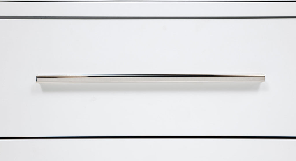 This bedroom set combines soft curvature and linear polish in a clean modern silhouette. Each piece features elongated brushed nickel pulls and subtle vertical tube accents that frame smooth white surfaces. The bed softens the look with a light grey upholstered headboard and footboard, adding contrast and comfort. Built from solid rubberwood, engineered wood, and laminate veneer, this set balances elegance with practical everyday function. Key Features: • Bedroom set features rounded silhouettes and clean lines for modern storage and sleep • White finish pairs with brushed nickel pulls and vertical metal tube detailing • Bed includes light grey fabric panels with soft foam for cushioned comfort • Felt-lined top drawers offer tinted interiors and integrated charging access • Drawers glide on 45mm metal runners with dovetail joints for smooth daily use • Built from solid Asian hardwood, engineered wood, and a smooth laminate veneer