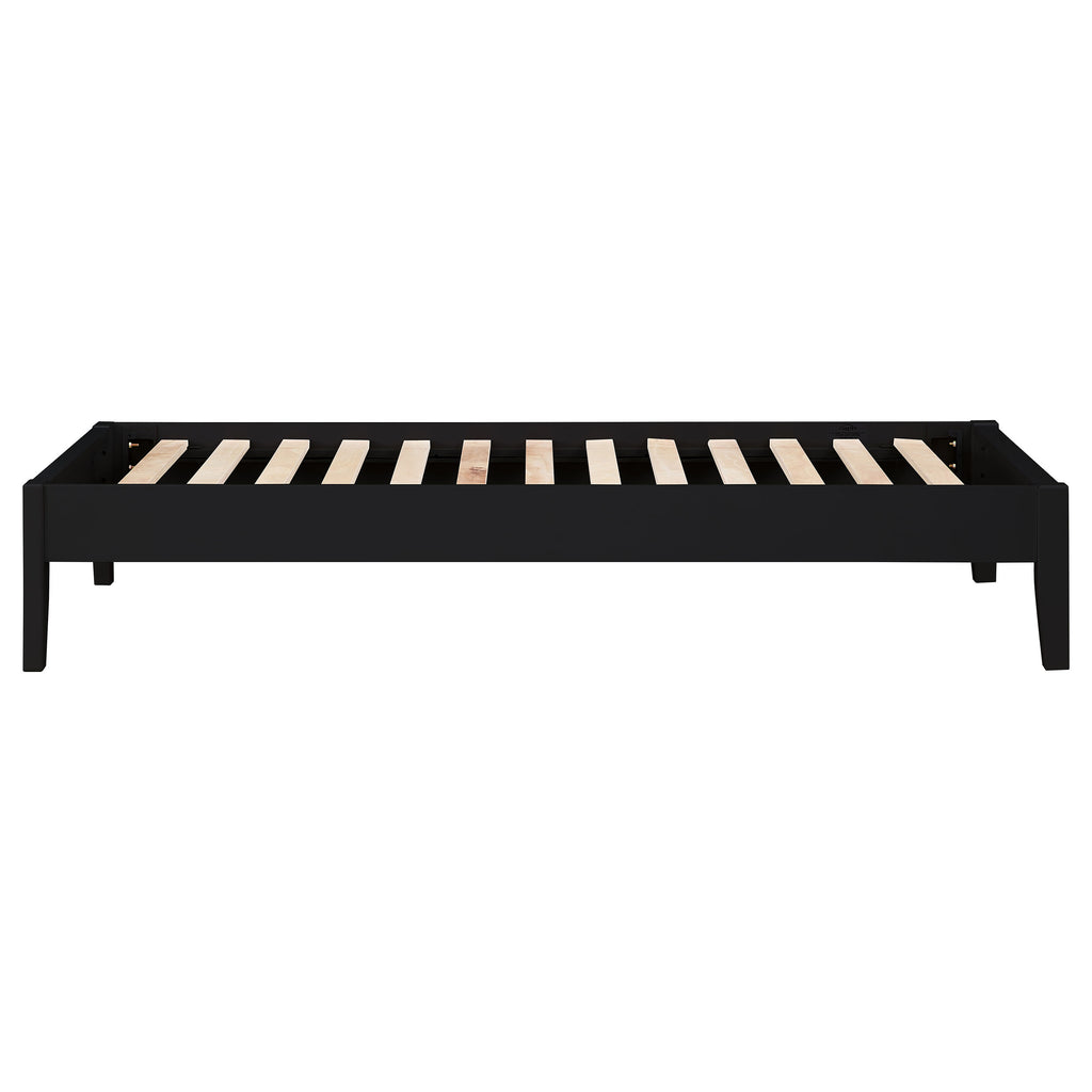 This Hounslow platform queen bed is a versatile value that can't be passed up. As a standalone bed, its clean, simple design has a no-fuss appeal. Yet, it's versatile enough to be attached to any headboard that fits your taste. The bed is finished in a rich cappuccino that matches well with any bedroom decor. This universal platform bed is built to please. Key Features: • Universal platform bed in cappuccino finish • Clean lines in a simple transitional style • Versatile for use as standalone bed or paired with any Coaster headboard • Pine and rubberwood construction • Slat kit included
