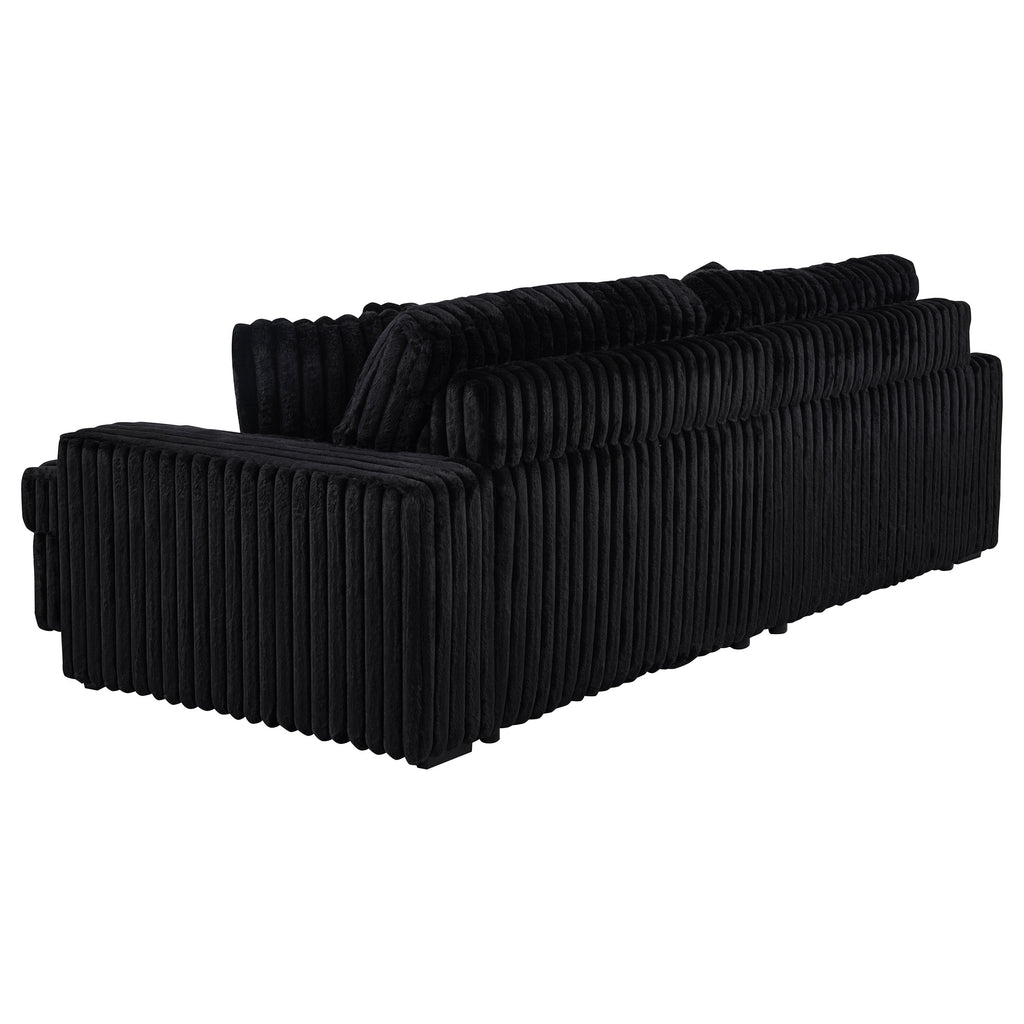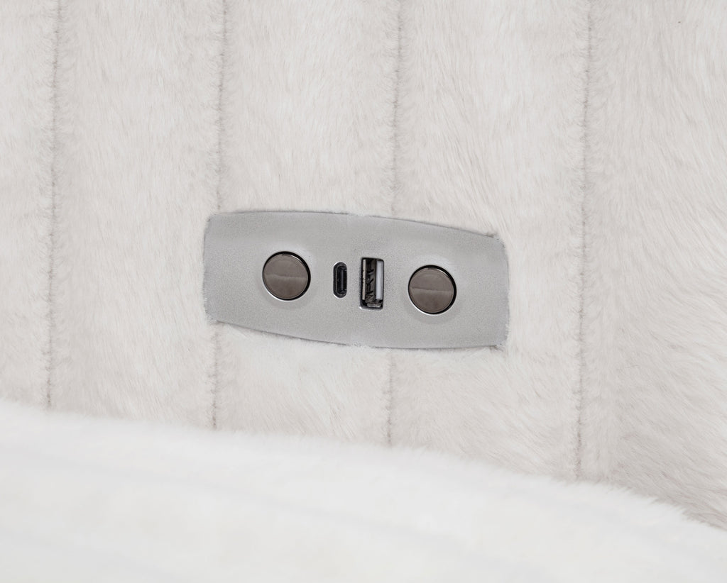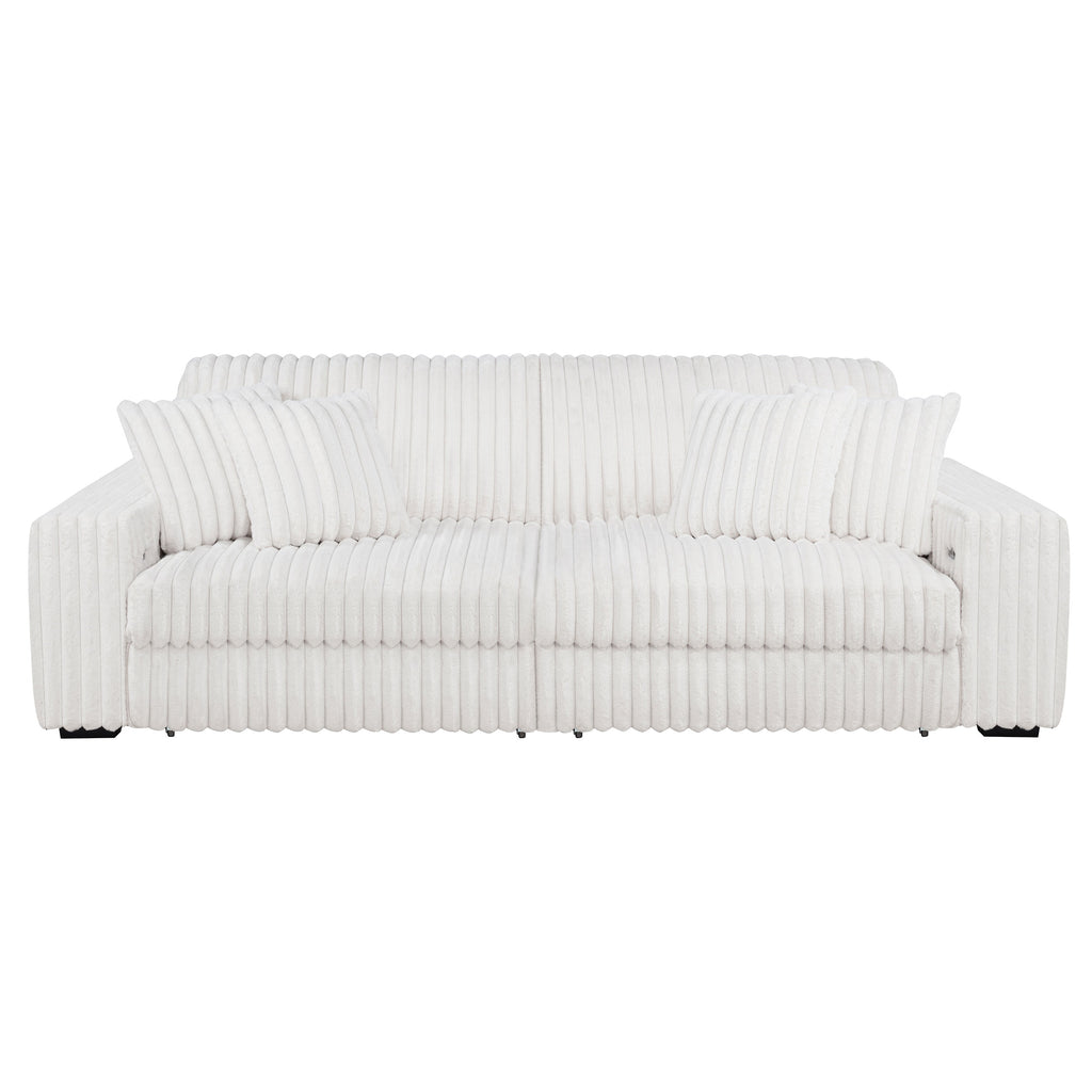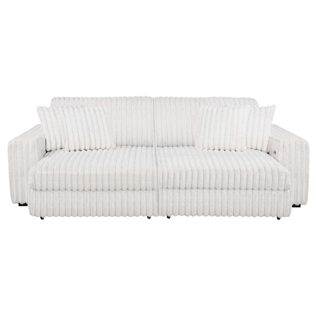 Striking and indulgently soft, this modern sofa set blends bold styling with innovative comfort. Deep vertical channel tufting enhances the rich corduroy upholstery, while dual power chaise functionality allows either side to extend independently, transforming the sofa into a full lounging surface. Wide arms, plush foam cushioning, and an integrated control panel with USB-A and USB-C charging bring next-level convenience. Designed for luxurious, tech-savvy relaxation. Key Features: • Contemporary sofa set in ivory corduroy features deep channel tufting and dual power chaise design • Each side of the sofa extends independently for custom comfort and spacious lounging • Wide padded arms and plush foam cushions offer sculptural comfort and bold modern form • Integrated control panels includes both USB-A and USB-C ports for convenient device charging • Corduroy fabric upholstery delivers rich texture and soft-touch appeal for everyday luxury • Crafted from soft fabric, foam cushioning, and durable plastic framing for long-lasting use