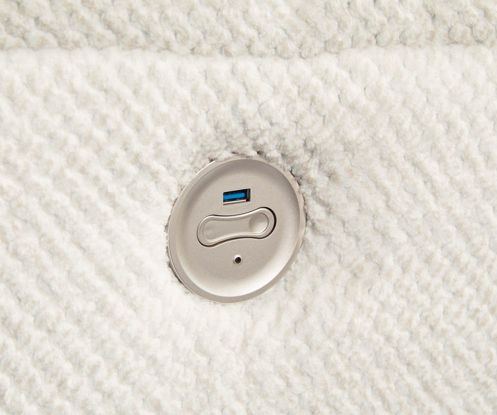 This oversized power recliner seamlessly complements your contemporary cozy space. Bold block arms accentuated with form-fitting padding lend a high-style silhouette. An ample seating area invites you to sprawl during binge watches and relaxed reading hours alike. And with reclining at the press of a button, this piece proves chic design and superb comfort go hand in hand.