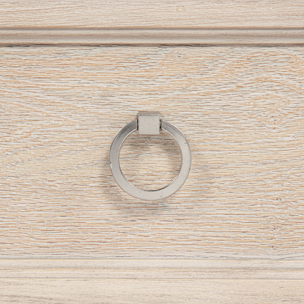 Breezy and balanced, this dresser and mirror set captures the warmth of coastal mornings and the elegance of timeless design. Framed with stepped trim and polished nickel ring pulls, the six-drawer dresser offers generous storage wrapped in washed oak serenity. Above, the mirror reflects light and openness, framed to echo the dresser’s graceful form. Crafted from poplar, oak veneer, and engineered wood, this set brings gentle refinement to the heart of the bedroom. Key Features: • Six-drawer dresser and mirror set with stepped trim and clean, symmetrical lines • Washed oak finish highlights wood grain with soft, sun-bleached character • Polished nickel ring pulls offer traditional elegance with subtle shimmer • Spacious drawers store clothing and essentials with everyday ease • Mirror reflects light and adds openness to any bedroom setting • Crafted from poplar, engineered wood, oak veneer, and mirrored glass for durability