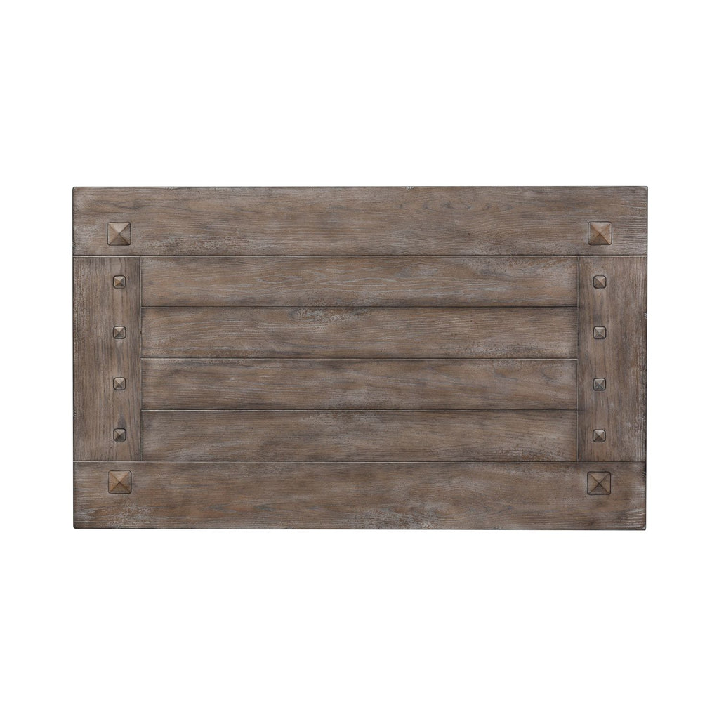 The Sedona features Spanish style turned legs with a heavy planked top and square peg accents. Bottom shelves for storage and display are featured for each table. This collection is perfect for leather upholstery.