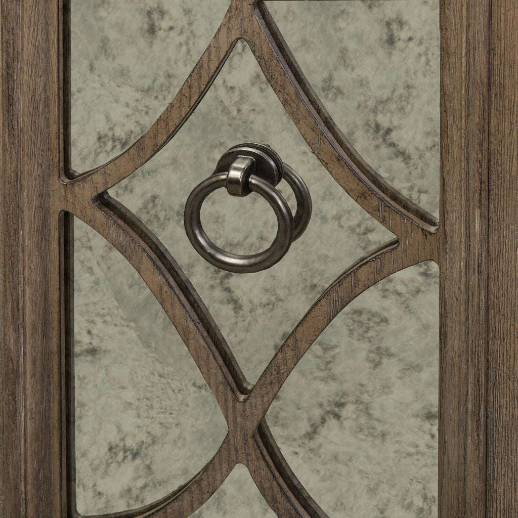 - Credenza Features Antique Mirrored Doors