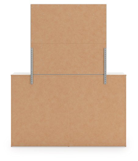 • Drawer interiors are lined with a faux linen laminate for a clean, finished look